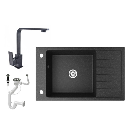 Teljes Nero Gránit mosogató NERO Grande + Design csaptelep + dugókiemelő (fekete) termékleírás