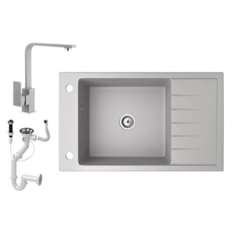 Nero Gránit mosogató NERO Grande + Design csaptelep + dugókiemelő (szürke) mosogatótálca termékleírás