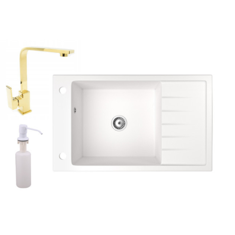 1 kép Nero Gránit mosogató NERO Grande + Design-Gold csaptelep + adagoló (fehér)