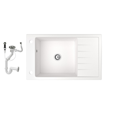 1 kép Nero Gránit mosogató NERO Grande + dugókiemelő (fehér)