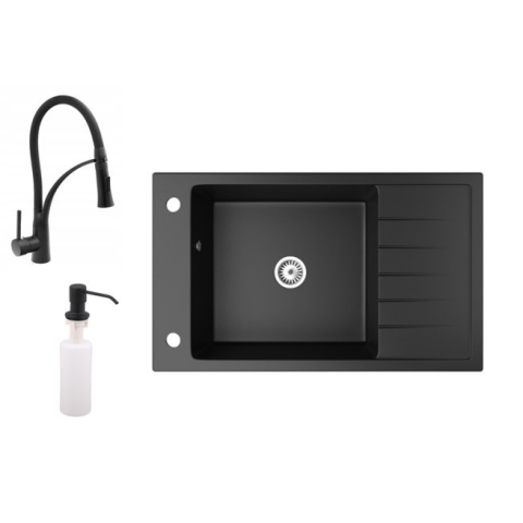 1 kép Nero Gránit mosogató NERO Grande + Duo-Flex csaptelep + adagoló (matt fekete)