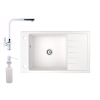 Nero Gránit mosogató NERO Grande + kihúzható Linea csaptelep + adagoló (fehér)
