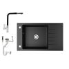 1 kép Nero Gránit mosogató NERO Grande + kihúzható Linea csaptelep + dugókiemelő (matt fekete)