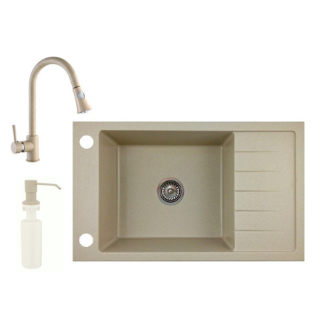 Nero Gránit mosogató NERO Grande + kihúzható Snake csaptelep + adagoló (bézs) mosogatótálca termékleírás