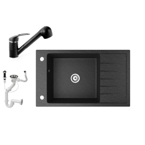 1 kép Nero Gránit mosogató NERO Grande + kihúzható zuhanyfejes Shower csaptelep + adagoló (fekete)