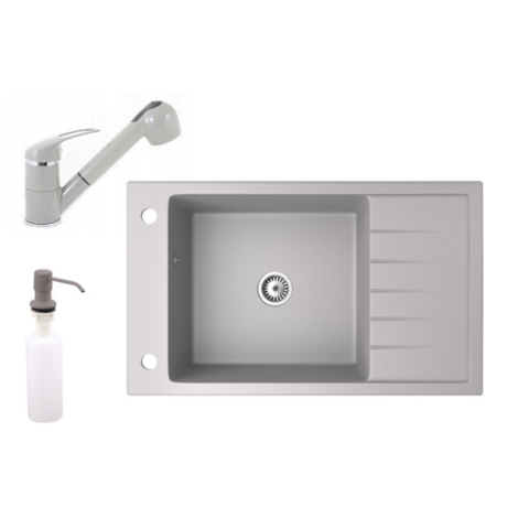 1 kép Nero Gránit mosogató NERO Grande + kihúzható zuhanyfejes Shower csaptelep + adagoló (szürke)
