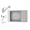 1 kép Nero Gránit mosogató NERO Grande + kihúzható zuhanyfejes Shower csaptelep + dugókiemelő (szürke)