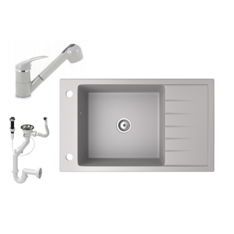 Nero Gránit mosogató NERO Grande + kihúzható zuhanyfejes Shower csaptelep + dugókiemelő (szürke) mosogatótálca termékleírás