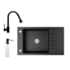 1 kép Nero Gránit mosogató NERO Grande + kihúzható zuhanyfejes Snake csaptelep + adagoló (fekete)