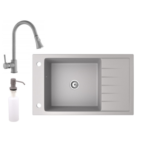 Nero Gránit mosogató NERO Grande + kihúzható zuhanyfejes Snake csaptelep + adagoló (szürke) mosogatótálca termékleírás