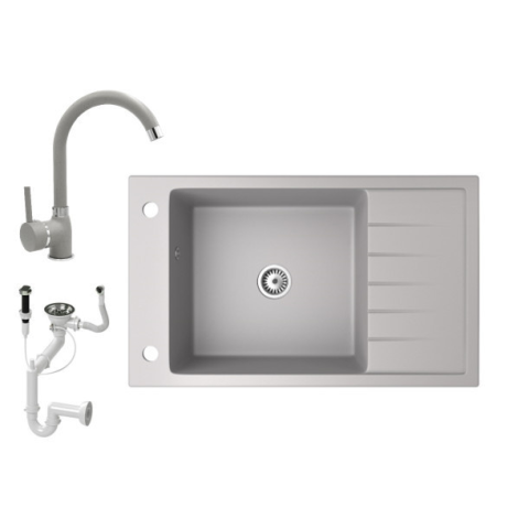 Teljes Nero Gránit mosogató NERO Grande + magasított csaptelep + dugókiemelő (szürke) termékleírás