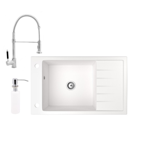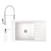 Nero Gránit mosogató NERO Grande + multifunkciós Loop-Spiral csaptelep + adagoló (fehér)