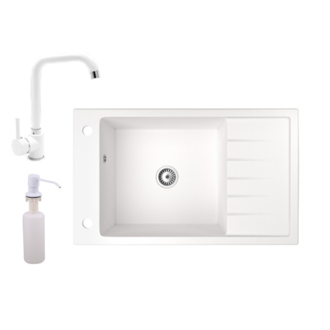Nero Gránit mosogató NERO Grande + Steel csaptelep + adagoló (fehér)