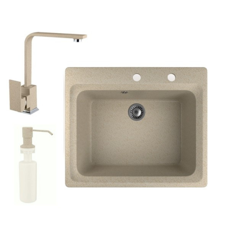 Teljes Nero Gránit mosogató NERO Italia + Design csaptelep + adagoló (bézs) termékleírás