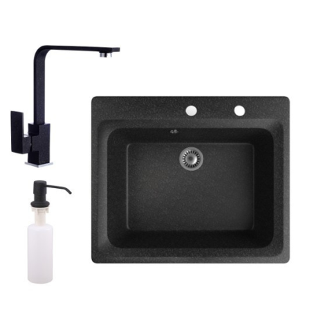 Teljes Nero Gránit mosogató NERO Italia + Design csaptelep + adagoló (Fekete) termékleírás