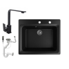 1 kép Nero Gránit mosogató NERO Italia + Design csaptelep + dugóemelő (matt fekete)