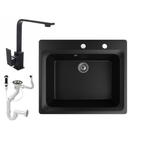 Teljes Nero Gránit mosogató NERO Italia + Design csaptelep + dugóemelő (matt fekete) termékleírás