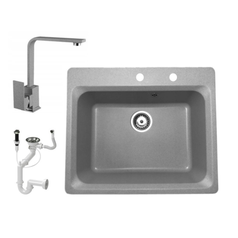 Nero Gránit mosogató NERO Italia + Design csaptelep + dugóemelő (szürke) mosogatótálca termékleírás