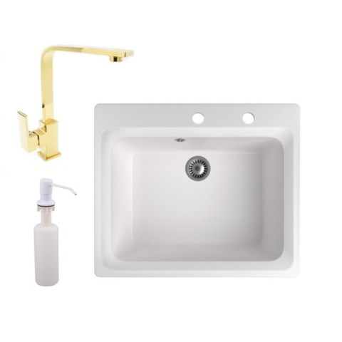 Nero Gránit mosogató NERO Italia + Design Gold csaptelep + adagoló (fehér) mosogatótálca termékleírás