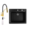 1 kép Nero Gránit mosogató NERO Italia + Duo-Flex Gold csaptelep + adagoló (matt fekete)