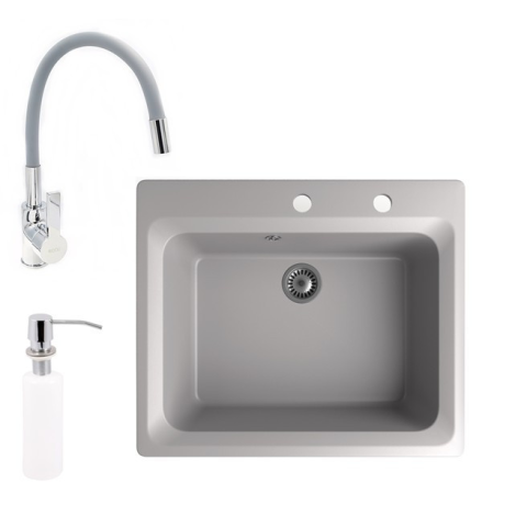 1 kép Nero Gránit mosogató NERO Italia + flexibilis csaptelep + adagoló (szürke)