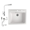 1 kép Nero Gránit mosogató NERO Italia + kihúzható fejes Linea csaptelep + dugókiemelő + (fehér)