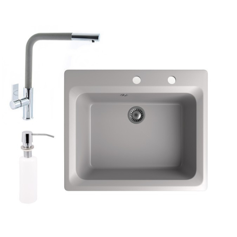 Teljes Nero Gránit mosogató NERO Italia + kihúzható Linea csaptelep + adagoló (szürke) termékleírás