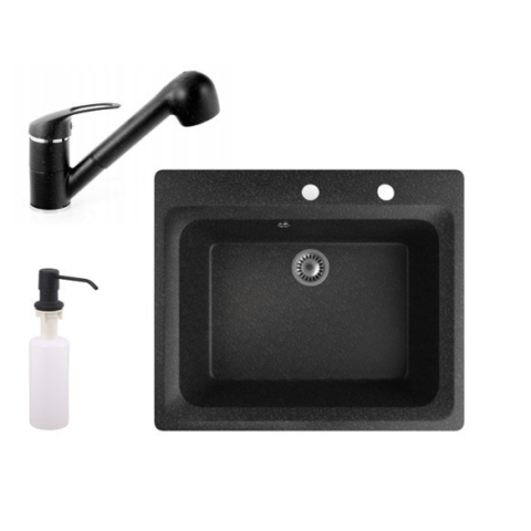 Teljes Nero Gránit mosogató NERO Italia + kihúzható Shower csaptelep + adagoló (fekete) termékleírás