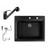 1 kép Nero Gránit mosogató NERO Italia + kihúzható Shower csaptelep + dugóemelő (matt fekete)