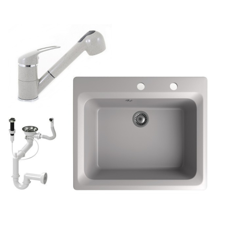 Nero Gránit mosogató NERO Italia + kihúzható Shower csaptelep + dugóemelő (szürke) mosogatótálca termékleírás