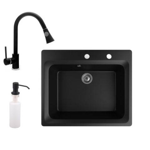 Nero Gránit mosogató NERO Italia + kihúzható Snake csaptelep + adagoló (matt fekete) mosogatótálca termékleírás