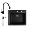1 kép Nero Gránit mosogató NERO Italia + kihúzható Snake csaptelep + adagoló (matt fekete)
