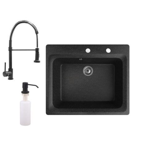 Teljes Nero Gránit mosogató NERO Italia + kihúzható Spiral csaptelep + adagoló (fekete) termékleírás