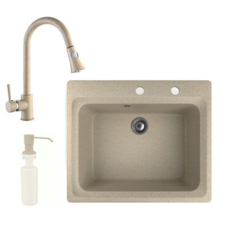 1 kép Nero Gránit mosogató NERO Italia + kihúzható zuhanyfejes Snake csaptelep + adagoló + (bézs)
