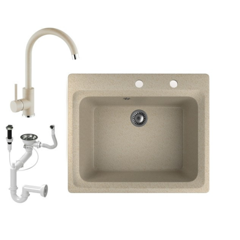 1 kép Nero Gránit mosogató NERO Italia + magasított csaptelep + dugóemelő (bézs)
