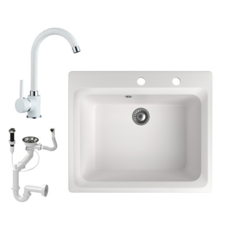 1 kép Nero Gránit mosogató NERO Italia + magasított csaptelep + dugóemelő (fehér)