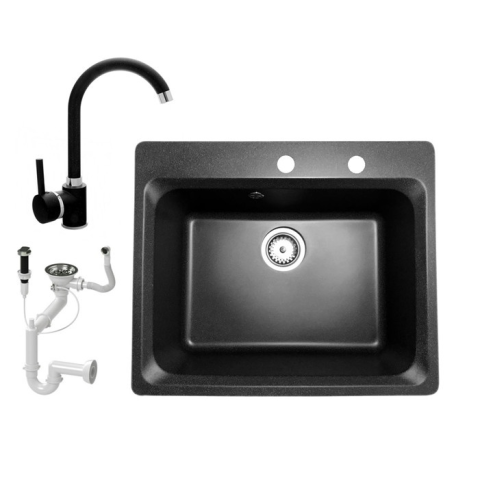 Nero Gránit mosogató NERO Italia + magasított csaptelep + dugóemelő (Fekete) mosogatótálca 1 kép
