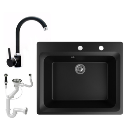 1 kép    Nero Gránit mosogató NERO Italia + magasított csaptelep + dugóemelő (matt fekete)