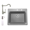 1 kép Nero Gránit mosogató NERO Italia + rusztikus csaptelep + adagoló (szürke)