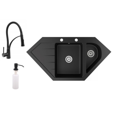 Nero Gránit mosogató NERO Joker + Duo-Flex csaptelep + adagoló (matt fekete)