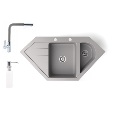 Teljes Nero Gránit mosogató NERO Joker + kihúzható Linea csaptelep + adagoló (szürke) termékleírás