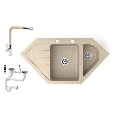 Teljes Nero Gránit mosogató NERO Joker + kihúzható Linea csaptelep + dugókiemelő (bézs) termékleírás