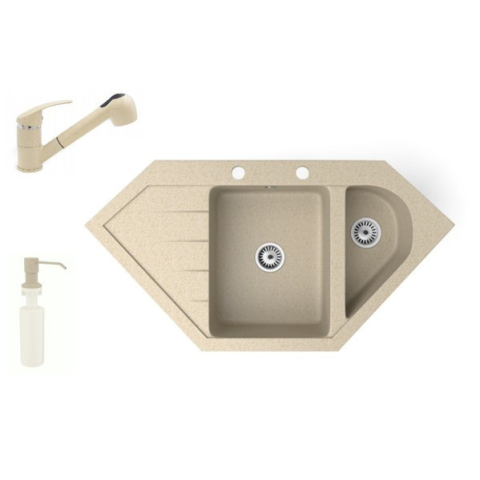 Nero Gránit mosogató NERO Joker + kihúzható zuhanyfejes Shower csaptelep + adagoló (bézs) mosogatótálca termékleírás