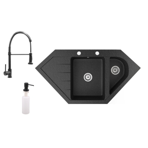 1 kép Nero Gránit mosogató NERO Joker + kihúzható zuhanyfejes Spiral csaptelep + adagoló (fekete)