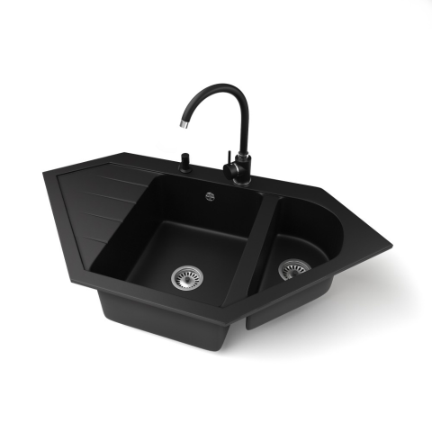 Nero Gránit mosogató NERO Joker + magasított csaptelep + adagoló (matt fekete) mosogatótálca 1 kép