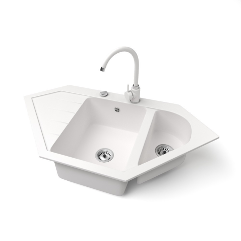 Teljes Nero Gránit mosogató NERO Joker + magasított csaptelep + dugókiemelő (fehér) termékleírás