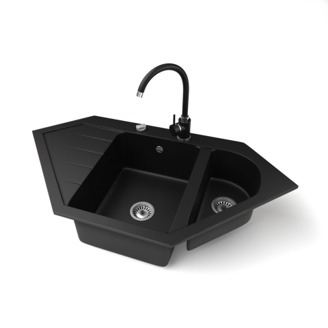 Nero Gránit mosogató NERO Joker + magasított csaptelep + dugókiemelő (matt fekete) mosogatótálca 1 kép