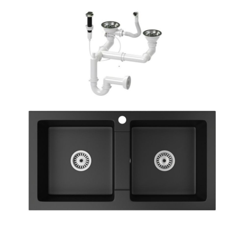 Teljes Nero Gránit mosogató NERO Lybra + dugóemelő (matt fekete) termékleírás