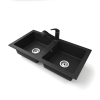 1 kép Nero Gránit mosogató NERO Lybra + kihúzható zuhanyfejes Shower csaptelep + szifon (fekete)