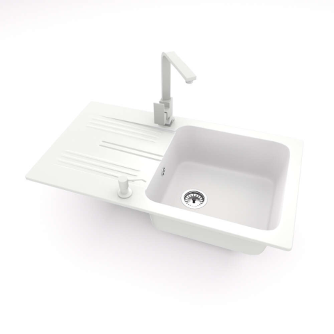 Nero Gránit mosogató NERO Malta + Design csaptelep + adagoló (fehér) mosogatótálca termékleírás